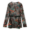 Shift dress from Ganni in Total Eclipse. Allover floral print. Round neckline. Concealed back zip closure. Long sleeves with black piping at cuff. Straight hem. Unlined. Casual fit.